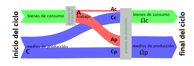 El valor transferido a todos los bienes pierde su forma en que funcionaba para crear bienes y por tanto ha de volverse a restaurar en su forma inicial.